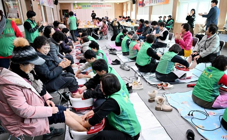 대경타임즈 김대경 기자 | 군위군새마을회(회장 박택관) 산하 직장공장새마을운동군위군협의회(회장 김천일)는 9일 오후, 효령면행정복지센터에서 지역 어르신 60여 명을 모시고‘찾아가는 공경문화 족욕봉사’를 실시했다.