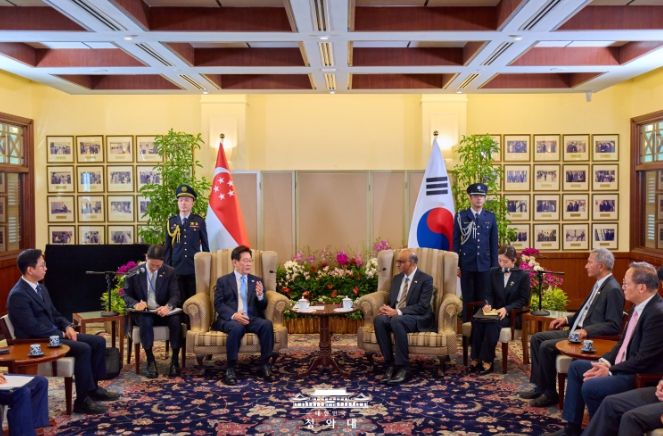 대경타임즈 이강옥 기자 | 싱가포르를 국빈 방문 중인 이재명 대통령은 3월 2일 오전 한-싱가포르 정상회담에 앞서 '타르만 샨무가라트남(Tharman Shanmugaratnam)' 대통령과 면담을 갖고, 양국 관계 발전 방안에 대해 논의했다.