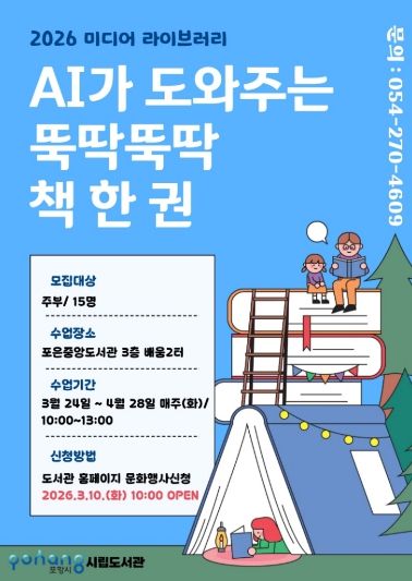 대경타임즈 이강옥 기자 | 포항시립포은중앙도서관은 오는 24일부터 4월 28일까지 매주 화요일, 포은중앙도서관 배움2터에서 ‘2026 상반기 별찌인문교실’과 ‘미디어라이브러리’ 수업을 운영한다.