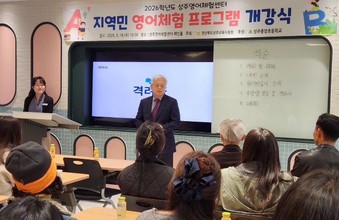 대경타임즈 남해련 기자 | 경상북도 성주교육지원청 산하 성주영어체험센터는 지역민의 영어 의사소통 능력 향상과 평생학습 문화 확산을 위해 '2026학년도 지역민 영어 회화 프로그램' 개강식을 성주영어체험센터 메인홀에서 개최했다.