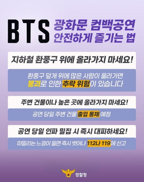 대경타임즈 최신형 기자 | BTS 광화문 컴백공연 안전하게 즐기는 법