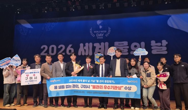 대경타임즈 최신형 기자 | 구미시 상하수도사업본부는 지난 20일 강동문화복지회관 봉두 아트홀에서 열린 ‘2026년 세계 물의 날’ 기념행사에서 경상북도 주관 우수기관 유공표창을 수상했다. 지난해 최우수 기관상에 이어 2년 연속 성과로, 물관리 정책 전반의 경쟁력을 다시 한 번 입증했다.