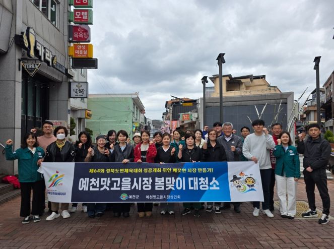 대경타임즈 김대경 기자 | 예천군 예천맛고을시장 상인회(회장 양종례)는 제64회 경북도민체육대회를 앞두고 지난 31일 오후 3시, 상인 30여 명이 참여한 가운데 ‘봄맞이 대청소’를 실시했다.