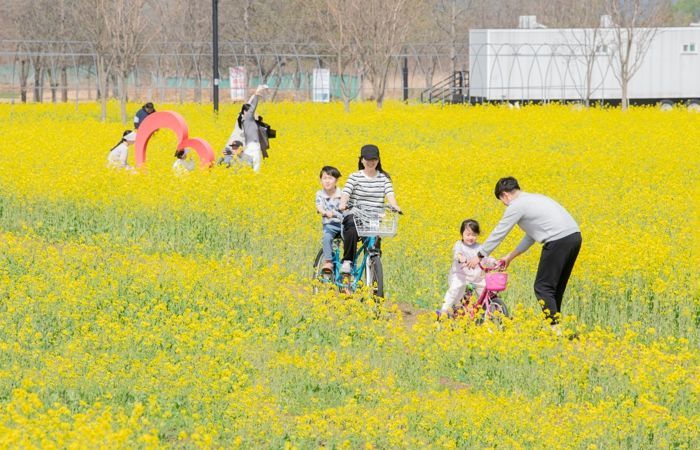 방문객들은 넓게 펼쳐진 산책로를 따라 걸으며 유채꽃을 감상하거나 자전거를 타고 공원 곳곳을 둘러보며 봄의 정취를 만끽할 수 있다. 곳곳에 마련된 포토존에서는 소중한 추억도 남길 수 있다.