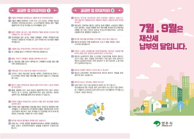 대경타임즈 최신형 기자 | 영주시는 2026년 7월 정기분 재산세 부과를 앞두고 시민들의 세금 납부 이해도를 높이고 편의를 제공하기 위해 재산세 안내 리플릿을 제작·배부한다.