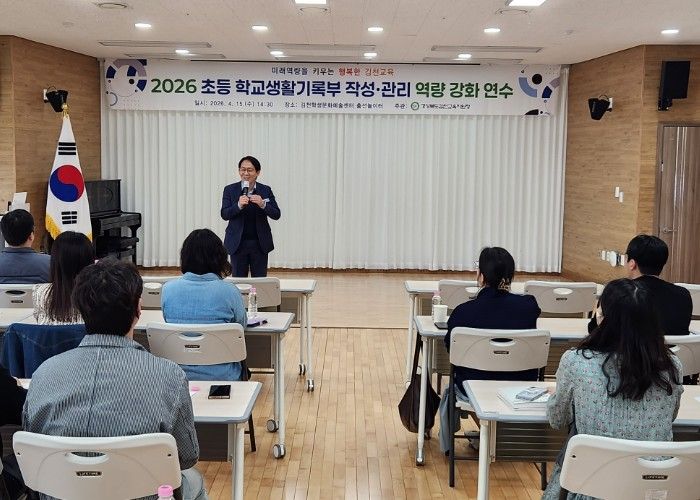 대경타임즈 남해련 기자 | 경상북도김천교육지원청은 2026년 4월 15일(수) 김천학생문화예술센터에서 관내 초등학교 학교생활기록부 업무담당자 및 희망 교사 30명을 대상으로 '2026 초등 학교생활기록부 작성・관리 역량 강화 연수'를 실시했다.