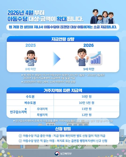 대경타임즈 최신형 기자 | 2026년 4월부터 아동수당 대상·금액이 확대됩니다.