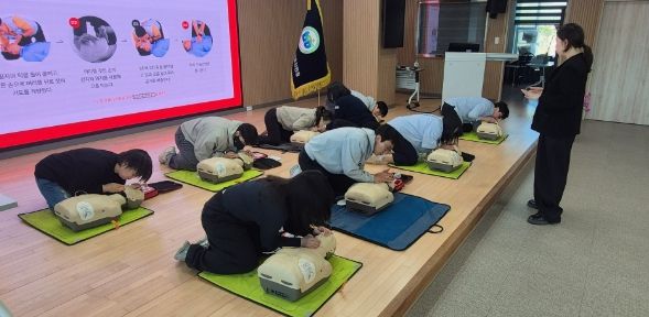 대한적십자사 경북지사와 연계하여 총 15시간의 직무연수 과정으로 운영됐으며, 심폐소생술과 자동심장충격기(AED) 사용법, 상처 및 근골격계 손상 처치, 재난안전교육 등 다양한 응급처치 교육 과정이 포함되어 실무 중심의 체계적인 안전교육이 이루어졌다.