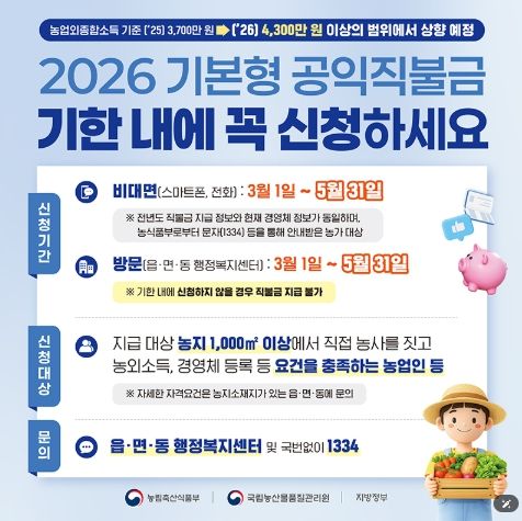 대경타임즈 최신형 기자 | 2026 기본형 공익직불금 기한 내에 꼭 신청하세요.