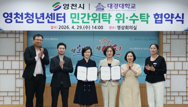 대경타임즈 최신형 기자 | 영천시는 29일 시청 영상회의실에서 대경대학교 산학협력단과 ‘영천청년센터 운영’에 관한 위·수탁 협약을 체결했다고 밝혔다.