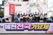 디지타임즈(DGTIMEZ) 최영 기자 | 제10회 예천전국가요제가 2일 오후 2시,‘2025 예천활축제&농산물축제’ 특설무대에서 열렸다. (사)한국연예예술인총연합회예천지회(지회장 채희삼)의 주관으로 진행되는 이번 대회에는 전국에서 엄선된 본선 12팀이 출연하여 열띤 경연을 펼쳤다. 예천전국가요제는 지역 문화예술 발전과 대중음악 활성화를 위해 꾸준히 이어져 온 행사로 예천색소폰동호회의 식전공연을 시작으로 본선 진출자 12팀과 강민주, 통일메아리악단, 인댄스 무용단 등의 초청공연이 펼쳐졌다. 시상식에서는 400만 원의 상금이 걸린 대상은 문정옥 씨(대구) 금상은 유소라 씨(충주)가 수상했으며, 은상은 장혜진 씨(문경), 동상은 강나은 씨(서울), 가창상은 김정희 씨(영주), 인기상은 최우혁 씨(대구)에게 각각 수여됐다. 수상자들에게는 수상의 영예와 함께 많은 격려가 전해졌다. 김학동 군수는 “지역문화 활성화와 주민 화합의 장을 마련해 가고 전국가요제가 더욱 발전하여 예천을 대표하는 문화예술축제로 자리매김하기를 바란다”고 전했다.
