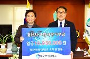 디지타임즈(DGTIMEZ) 이강옥 기자 | 경산시는 12일 대구한의대학교 변창훈 총장과 교직원들이 십시일반하여 모은 1,005만 원의 고향사랑기부금을 경산시에 전달했다고 밝혔다. 연말을 맞아 고향사랑기부제에 대한 폭발적인 관심이 이어지고 있는 가운데 대구한의대학교의 교직원들은 지난해에 이어 올해도 경산시에 꾸준히 기부를 이어가고 있다. 변창훈 총장은 “지역의 발전을 응원하는 마음으로 교직원들과 함께 고이 모은 고향사랑기부금을 전달하는 뜻깊은 자리에 함께하게 되어 영광이다”고 하며, 앞으로도 지역사회에 계속 힘을 보탤 것을 약속했다. 조현일 시장은 “경산에 대한 한결같은 마음을 고향사랑기부금으로 표현해 주신 데 대하여 깊은 감사를 드린다. 대구한의대학교의 발전도 함께 응원한다”고 답했다. 한편, 경산시는 25일까지 10만 원 이상 기부자를 대상으로 100명을 추첨해 배민앱 이용권(2만원권 50매), 커피쿠폰(1만원권 50매)을 지급하는 이벤트를 실시하고 있다. 자세한 내용은 경산시 고향사랑기부제 홈페이지'gslove.kr'에서 확인할 수 있다.