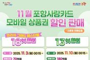 디지타임즈(DGTIMEZ) 이강옥 기자 | 포항시는 코리아 그랜드 페스티벌 기간 지역 내 소비 붐업을 위해 내달 3일부터 카드형·모바일 포항사랑상품권을 70억 원 규모로 18% 할인판매를 시작한다. 코리아 그랜드 페스티벌은 이달 29일부터 내달 9일까지 12일간 개최되는 국가 차원의 통합 할인 행사로 제조·유통과 전통시장, 소상공인 업계가 참여한다. 이번 포항사랑카드 특별할인 판매는 기존 할인 혜택 13%에 5%를 추가해 총 18% 할인 혜택이 적용되며, 국비를 추가 확보해 코리아 그랜드 페스티벌과 연계로 진행하는 행사로 지역 내 소비 활성화에 기여할 것으로 기대하고 있다. 또한 시는 내달 3일부터 시작하는 포항사랑카드 70억 원 규모의 18% 할인판매에 이어 내달 10일부터는 180억 원 규모로 13% 할인판매 등 11월에 총 250억 원을 발행해 실질적인 소비 촉진으로 지역 상권 회복과 지역경제 선순환을 이어가겠다는 방침이다. 이번 포항사랑카드 18% 특별 할인판매의 개인 구매 한도는 10만 원이며, 보유 한도는 100만 원이다. 오는 11월 3일 0시 15분부터 모바일 앱(iM샵)에서 충전할