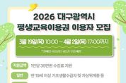 대경타임즈 최영 기자 | 대구광역시는 교육 격차를 해소하고 시민들의 역량 개발과 자아실현을 돕기 위해 3월 19일부터 ‘2026년 대구광역시 평생교육이용권’ 1차 이용자 모집을 시작한다. 평생교육이용권은 사회·경제적 여건 등으로 평생학습 참여가 어려운 시민에게 수강료와 교재비 등을 지원하는 제도다. 대구시는 지난해 4,800여 명의 시민에게 자격증 취득, 직업능력 개발, 디지털 역량 강화 등 다양한 학습 기회를 제공했다. 올해 지원 규모는 약 5,000명으로, 두 차례에 나눠 모집한다. 1차 모집은 3월 19일부터 4월 2일까지 저소득층과 노인 등을 대상으로 진행된다. 이용권별 신청 대상은 ▲일반 이용권은 19세 이상 기초생활수급자 및 차상위계층 등 ▲AI·디지털 이용권은 30세 이상 시민 ▲노인 이용권은 65세 이상 시민이다. 2차 모집인 장애인 평생학습 참여 확대를 위한 ‘장애인 평생교육이용권’은 4월 14일부터 4월 27일까지 별도로 접수할 예정이다. 이용권 신청은 평생교육이용권 누리집을 통해 온라인으로 신청하면 된다. 자세한 사항은 대구시 평생교육이