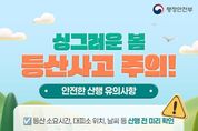 대경타임즈 최신형 기자 | ■ 싱그러운 봄 등산사고 주의! · 등산 소요시간, 대피소 위치, 날씨 등 산행 전 미리 확인 · 가벼운 몸풀기 및 체력에 맞는 등산로 선택 · 산행 중 몸에 무리가 오면 즉시 하산 · 반드시 지정된 등산로 이용 · 출입이 통제된 위험 구역 진입 금지 · 체온 유지를 위한 여벌의 옷이나 보온용품 챙기기