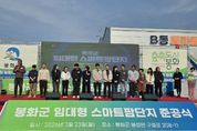 대경타임즈 김대경 기자 | 봉화군은 23일 오후 3시 봉성면 창평리 소재 봉화군 임대형 스마트팜단지 준공식을 개최하고, 농업 대전환의 서막을 알렸다. 이날 준공식에는 박현국 군수를 비롯한 군의원, 유관기관장, 농업인단체, 지역주민 등 300여명이 참석한 가운데 진행됐다. 군 임대형스마트팜은 2023년 2월 경북도 공모사업에 선정된 이후 2024년 7월 실시설계를 완료하고 10월 착공하여 지난해 12월 시험가동을 거친 후 이날 준공식을 갖게 됐다. 군은 봉성면 창평리 312-1번지 일원에 총사업비 245억원을 투입해 5.3ha의 부지에 3.6ha 규모의 ICT 스마트온실 2동과 연구지원센터, 자원재생시설, 자연 정화조를 조성했다. 특히 군 스마트팜단지에는 공기열 히트펌프 기반의 에너지 공동이용 시스템이 도입되어 냉난방비를 크게 절감할 수 있어 청년 농업인의 경영비 부담을 완화하고 양액 재활용설비는 저탄소 친환경농업 실현에도 기여할 것으로 기대된다. 지난 2년간 군 스마트팜 기초 및 심화교육과정을 거쳐 자체선발 된 17명과 도 혁신벨리에서 선발된 4명 등 총 7팀 21명의 제1기 청년 농업