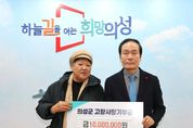대경타임즈 김대경 기자 | 의성군은 지난 26일 단촌면에 소재한 황금농장 김후순 대표가 고향사랑기부금 1천만 원을 의성군에 기탁했다고 밝혔다. 황금농장은 돼지 사육을 전문으로 하는 농장으로, 김후순 대표는 지난해 연말에도 고향사랑기부금 5백만 원을 기탁하는 등 지역을 위한 나눔을 꾸준히 실천해 오고 있다. 김후순 대표는 “올해 황금농장 역시 산불로 피해를 입었지만, 어려운 상황 속에서도 지역을 위한 마음을 전하고 싶었다”며, “기탁한 고향사랑기부금이 의성 발전을 위해 뜻깊게 사용되기를 바란다”고 말했다. 김주수 의성군수는 “어려운 경영 여건 속에서도 이웃 사랑을 실천하며 기부에 동참해 주신 김후순 대표께 진심으로 감사드린다”며, “기탁해 주신 소중한 기부금은 주민 복리 증진과 의성 발전을 위해 투명하고 의미 있게 사용하겠다”고 밝혔다.