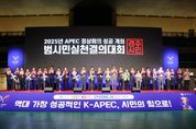 디지타임즈(DGTIMEZ) 최신형 기자 | 경주시가 2025년 APEC 정상회의 개막을 한 달 앞두고 시민의 힘을 하나로 모아 성공개최 의지를 다졌다. 시는 30일 경주실내체육관에서 ‘2025년 APEC 정상회의 성공개최 범시민실천결의대회’를 성황리에 개최했다고 밝혔다. 이번 행사에는 APEC 범시도민지원협의회(공동회장 박몽룡·이상걸) 소속 회원을 비롯해 유관기관, 시민단체, 자원봉사자 등 경주시민 3천여 명이 참석해 시민과 함께하는 APEC의 진정한 의미를 되새겼다. 특히 주낙영 경주시장을 비롯해 김석기 국회 외교통일위원장, 이동협 경주시의장, 최병준 경북도의회 부의장을 비롯해 시·도의원 전원이 참석해 시민과 함께 손님맞이 실천 결의를 다지고 성공 개최를 향한 열기를 더했다. 행사장 내부에는 시민단체들이 자체 제작한 손님맞이 실천 결의 현수막이 곳곳에 걸려 있어, APEC 성공개최를 향한 시민들의 뜨거운 참여 의지를 생생하게 보여주었다. 본행사에 앞서 참석자들은 ‘APEC 시민 10대 실천과제’를 함께 되새기며, 모든 시민이 APEC의 주인으로서 행동할 때 성숙한 시민의식과 지속가능한