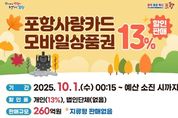 디지타임즈(DGTIMEZ) 이강옥 기자 | 포항시는 추석 명절 지역경제 활력 제고를 위해 내달 1일부터 카드형·모바일 포항사랑상품권(이하 포항사랑카드)을 260억 원 규모로 13% 할인 판매한다. 시는 지난 9일 발행한 600억 원 규모 상품권이 완판됨에 따라, 내달에도 13% 할인 판매를 통해 시민과 소상공인들에게 직접적인 혜택을 제공하고, 지역 골목상권 소비 촉진의 마중물 효과를 이어가겠다는 방침이다. 올해 포항시는 당초 목표보다 500억 원 확대한 총 3,000억 원 규모의 상품권을 발행한다. 연말까지 매월 초 상품권을 발행하며 13% 할인율을 유지해 지역 자금 역외 유출을 막고 소상공인 매출 증대, 지역경제 선순환 구조 강화에 기여할 계획이다. 개인별 구매 한도는 월 50만 원, 보유 한도는 100만 원으로 조정된다. 개인을 대상으로만 할인하고, 지류형은 판매하지 않는다. 상품권은 10월 1일 0시 15분부터 모바일 앱 ‘iM샵’에서 충전할 수 있으며, 104개 판매대행 금융기관 영업점에서도 영업시간 내 충전이 가능하다. 포항사랑카드는 실물카드 결제 외에도 ▲삼성페