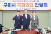 디지타임즈(DGTIMEZ) 김영호 기자 | 구미시는 9월 30일 국회를 방문해 구자근, 강명구 지역구 국회의원과 간담회를 열고 지역 주요 현안과 국비 확보 전략을 논의했다. 이날 간담회에는 김장호 시장을 비롯해 구미시 주요 간부 공무원 등 30여 명이 참석했다. 시는 현안 사업 추진 상황과 정부 예산 동향을 공유하며 국회 차원의 전략적 지원 방안을 모색했다. 주요 현안사업으로는 △구미국가산업단지 1~3단지 연결교량 신설 △구미~신공항 철도건설 △대한민국역사박물관(구미산업화역사관) 건립 △새마을운동중앙회 및 연수원 유치 △'5극 3특'국가균형성장 전략 대응 △한국은행 구미지역본부 유치 △'방위산업 소재ㆍ부품ㆍ장비 특화단지'유치 △국가 푸드테크 클러스터 조성 등이 논의됐다. 주요 국비사업으로 △구미시 제조창업 인큐베이팅 센터 구축 △AX 실증산단 구축 사업 △지역 주력 중소기업형 인공지능 데이터 스페이스 구축 △차세대 디스플레이 핵심부품ㆍ소재 기술개발 △반도체 장비 챔버용 소재부품 제조 및 검증 테스트베드 구축 △수요확대형 배터리 테스트베드 구축 △구미 산동 국민체육센터 조성 △푸드테크 연구지원센터 구축 △펫테크 산업화 지원센