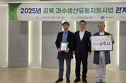 디지타임즈(DGTIMEZ) 최신형 기자 | 상주시는 지난 12일 경상북도에서 실시한‘2025년 과수산업육성시책 평가’에서 탁월한 성과를 인정받아 우수상을 수상했다. 과수산업 육성 시책 평가는 국‧도비 예산 확보 및 집행 실적, 국‧도비 공모사업 확보 노력, 시군의 차별적인 자체사업 및 특수시책 시행 여부 등 과수산업 관련 정책의 추진성과를 종합적으로 심사하여 우수 지자체를 선정하는 평가이다. 상주시는 올해 과수분야 사업에 약 84억원의 예산편성, 2026년 공모사업 4억3천만원 확보, 자체사업 추진 실적 등의 성과를 인정받아 우수 지자체로 선정됐다. 상주시는 특히 과수 저온피해 예방을 위해 860ha 면적에 해당하는 저온피해 경감제를 적극 지원했고, FTA기금 사업으로 1,011개소에 고품질 과수생산 및 과수 재해예방을 위한 시설을 지원하는 등 생산력 강화 및 과수 피해 방지에 행정력을 집중했다. 상주시 관계자는 “이번 수상은 상주시와 과수 농업인들이 함께 만들어낸 결과이며, 이번 시책평가에서 좋은 성적을 거둔 것을 발판 삼아 앞으로도 과수분야의 위상을 더욱더 높이고 과수농가의 소득증대 및 과수산업