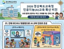 대경타임즈 남해련 기자 | 경북교육청은 ‘AI와 동행하는 따뜻한 경북교육’을 비전으로 다가오는 인공지능 시대를 주도할 미래 인재 양성을 위해 ‘2026 AI(인공지능)교육 종합계획’을 수립해 본격 추진한다고 18일 밝혔다. 이번 종합계획은 학생과 교사가 안전하고 유익하게 AI를 활용할 수 있도록 △AI 인프라 조성 △학교별 맞춤 지원 △수업 밀착형 교육 프로그램 등 도 단위–학교 단위–학급 단위로 이어지는 촘촘한 학교 지원 방안을 포함하고 있다. 먼저 도 단위에서는 언제 어디서나 맞춤형으로 학습할 수 있는 AI 교육 인프라를 구축한다. 교육청과 민간 에듀테크가 통합된 인공지능 맞춤형 교수학습 플랫폼 ‘경북 AI 배움터’를 본격 운영해 도내 모든 학생과 교사가 자유롭게 활용할 수 있도록 한다. 또한 지역 맞춤형 AI 교육의 거점 허브가 될 ‘경상북도교육청 인공지능교육관’이 오는 6월 의성군에서 개관할 예정이다. 이와 함께 현장 교사와 학생을 위해 ‘초․중․고 급별 생성형 AI 활용 길라잡이’를 발간해 안전하고 유익한 AI 활용 가이드라인을 3월 27일까지 도내 전체 학교에 보급할 계획이다. 학교