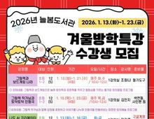 디지타임즈(DGTIMEZ) 남해련 기자 | 경상북도교육청 청도도서관(관장 조은희)은 겨울방학을 맞아 어린이들의 창의력과 사고력을 키울 수 있는 '2026년 늘봄도서관 겨울방학특강' 수강생을 오는 12월 19일부터 모집한다. 이번 겨울방학특강은 2026년 1월 13일부터 1월 23일까지 운영되며, 어린이들의 흥미와 발달 단계를 반영한 4개 프로그램으로 구성됐다. 초등 저학년 대상 프로그램은 그림책 읽기와 보드게임을 결합해 상상력과 협동심을 기르는 ‘그림책과 보드게임 나라’, 그림책 작가와 함께 인형극을 만들며 창의력과 감성을 키우는 ‘그림책 작가님과 토닥토닥 인형극’을 운영한다. 또한 초등 중·고학년 대상 프로그램은 AI 기술을 활용해 콘텐츠를 제작하는 ‘나도 AI 크리에이터’, 책 속 단서를 바탕으로 토론 활동을 통해 사고력과 표현력을 높이는 ‘문학탐정 토론교실’을 진행한다. 신청은 청도도서관 누리집에서 온라인으로만 가능하며, 경상북도에 거주하는 초등학생 누구나 참여할 수 있다. 조은희 청도도서관장은 “추운 겨울, 도서관에서 따뜻하고 즐거운 배움의 시간을 제공하고자 다양한 프로그램을 준