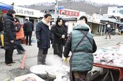대경타임즈 이강옥 기자 | 이재명 대통령과 김혜경 여사는 오늘 낮, 설 명절을 앞두고 충북 충주시에 위치한 무학시장을 찾아 지역 세밑 물가를 점검하고 상인들을 만나 현장 의견을 청취했다. 무학시장은 지난 1978년 노점상들의 정착을 위해 개설된 전통시장이며, 이번 방문은 설 민심을 청취하기 위한 민생 행보의 일환이다. 이 대통령과 김 여사는 시장 내 여러 상점을 들러 “새해 복 많이 받으세요”라며 인사를 했고, 상인과 시민들은 환호와 박수로 이 대통령 부부를 맞았다. 이 대통령 부부에게 더덕을 판매한 상인은 “덕분에 마수걸이를 한다”며 “오늘 장사가 잘될 것 같다”고 말해 웃음을 자아냈다. 다른 상인들도 “힘나게 해주셔서 감사하다”, “너무 고생 많으시다”며 인사를 전했다. 이 대통령 부부는 황태포, 시금치, 곶감과 깐밤 등 제수용품과 먹거리를 구입했고 백도라지, 마른 멸치, 배추전 등을 즉석에서 맛보기도 했다. 이 대통령 부부는 온누리상품권과 현금으로 결제했다. 김 여사가 물건을 고르는 사이 이 대통령은 상인들에게 “장사는 잘 되느냐”, “곧 설인데 어떠시냐”고 물었다. 정육점 사장은