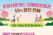 대경타임즈 이강옥 기자 | 포항시가 지역 경기 회복과 민생경제 안정을 위해 내달 3일부터 카드형·모바일 포항사랑상품권(포항사랑카드) 230억 원을 10% 할인된 금액으로 판매한다. 시는 이달까지 포항사랑상품권 830억 원 발행한 데 이어, 이번 할인 판매분 230억 원 추가 발행으로 올해 연초에만 총 1,060억 원 규모의 포항사랑상품권을 유통하게 된다. 골목상권과 전통시장에 집중 공급해 지역 상권 소비를 촉진하고, 민생경제 회복을 이어간다는 취지다. 이번 할인 판매는 2월과 같은 10% 할인율이 적용되며, 개인 구매 한도는 월 40만 원, 보유 한도는 70만 원이다. 시민들의 가계 부담을 덜고 소상공인 매출 증대에도 실질적인 도움이 될 것으로 기대된다. 포항사랑카드 충전은 3월 3일 0시 15분부터 ‘iM샵 앱’ 또는 지역 내 104개 판매 대행 금융기관 영업점을 통해 가능하다. 카드 판매 대행 금융기관 현황은 포항사랑상품권 홈페이지에서 확인할 수 있으며, 시는 시민 편의를 위해 판매대행점을 지속 확대해 나갈 계획이다. 포항사랑카드는 실물 카드 결제는 물론 ▲삼성페이 ▲네이버페이 Q