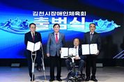 대경타임즈 김대경 기자 | 김천시장애인체육회는 2월 25일 김천시청 3층 강당에서 ‘스포츠 중심도시 김천에서 장애인과 비장애인 모두가 함께하는 스포츠 환경 조성’을 위한 김천시장애인체육회의 공식 출범식을 가졌다. 이번 행사에는 배낙호 회장을 비롯하여 장애인체육회 임원 등 300여 명의 내빈들이 참석하여 장애인체육회의 힘찬 출범을 알렸다. 행사는 장애인과 비장애인이 조화롭게 어우러지는 김천의 미래를 그리듯 시립교향악단의 연주와 시립합창단의 합창으로 구성된 식전 공연으로 시작됐으며, 여상규 상임부회장의 출범선언, 손태옥 사무국장의 경과보고가 진행됐다. 이어 회기의 릴레이 전달, 도장애인체육회의 인준패 전수, 공로패 수여, 가맹단체 인준서 수여가 진행됐으며, 배낙호 회장의 기념사, 안용우 도장애인체육회 상임부회장 격려사, 나영민 의장, 박선하 도의원, 최한동 김천시체육회장의 축사와 떡케이크 절단 퍼포먼스가 이어졌다. 김천시는 2024년 12월 2일 장애인체육회 설립추진계획을 수립하고 12월 11일 설립준비위원회 구성, 수차례의 회의를 거치고 규약 및 제규정의 제정, 인력채용 및 사무실 인프라 구축 등 설